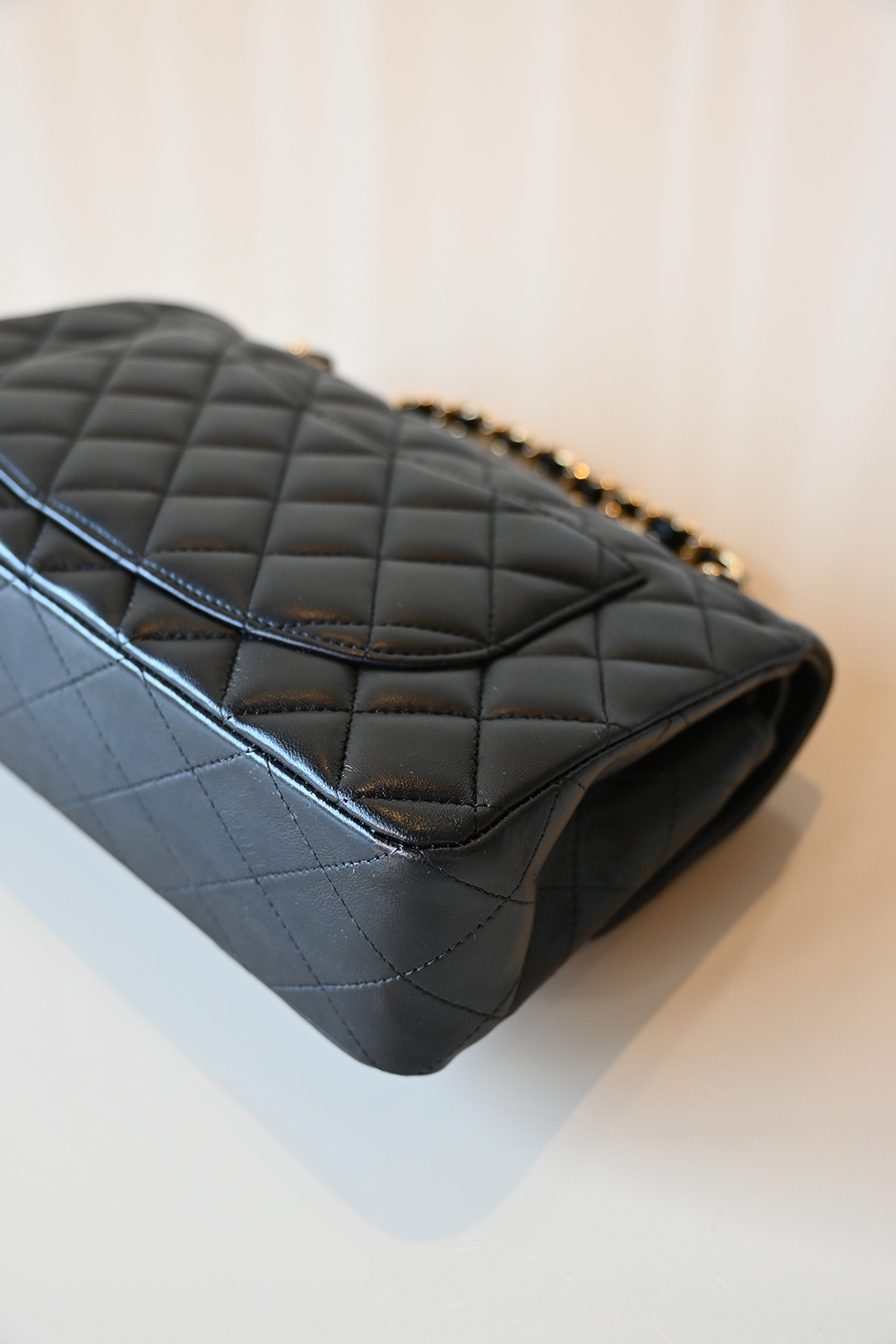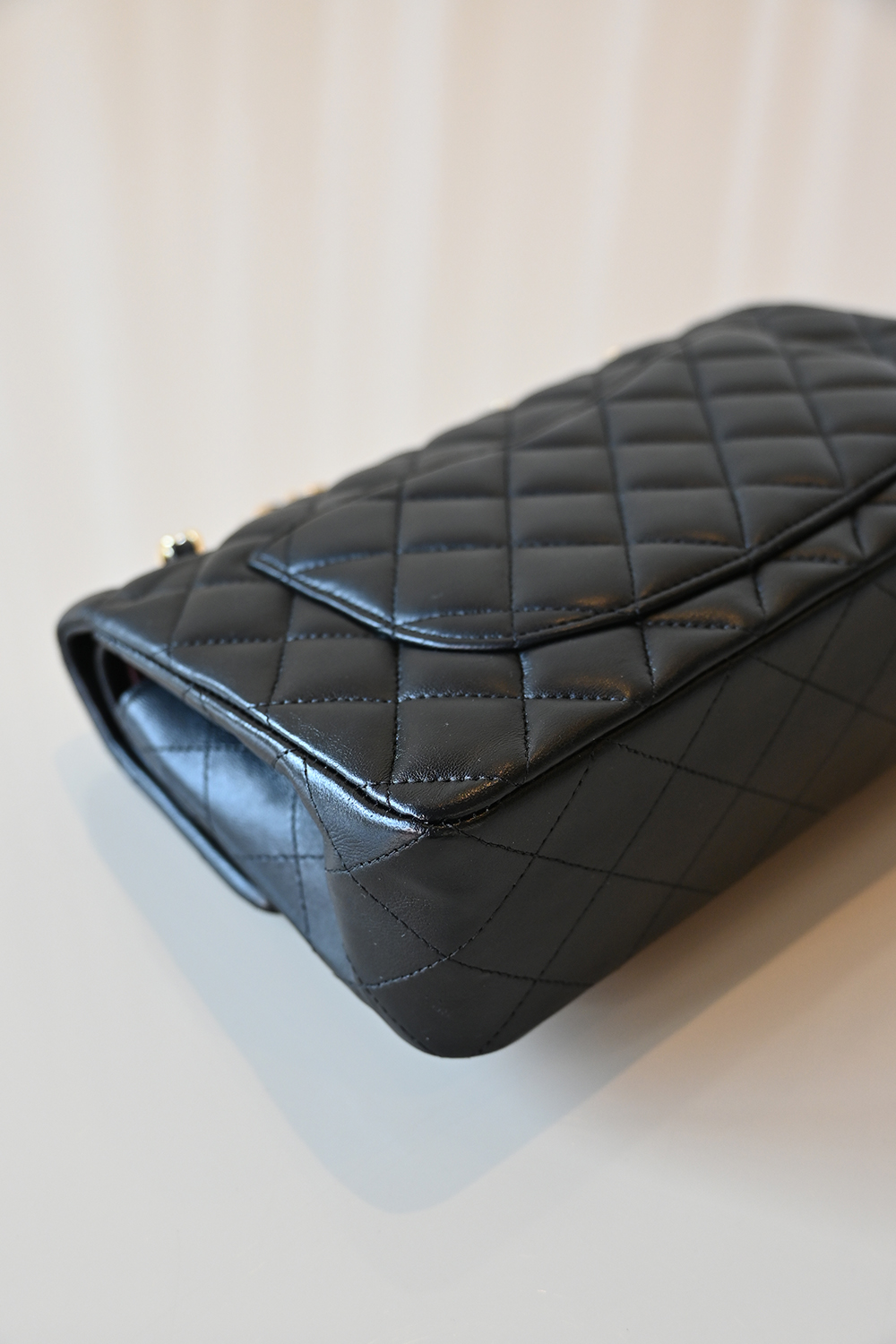 • Black lambskin leather