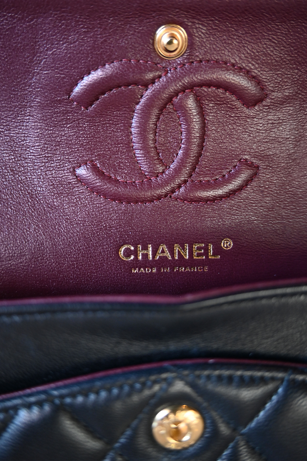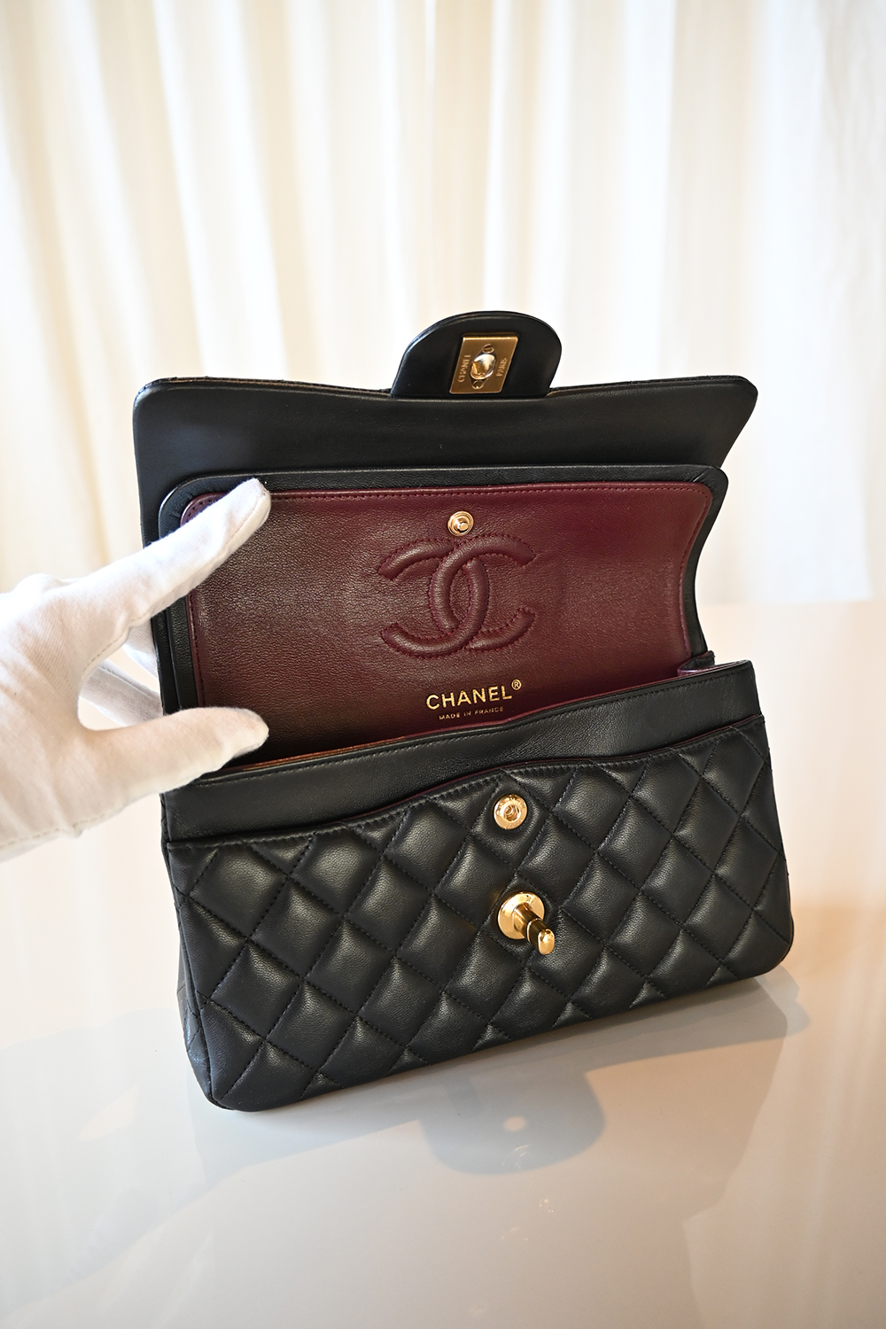 • Burgundy lambskin lining