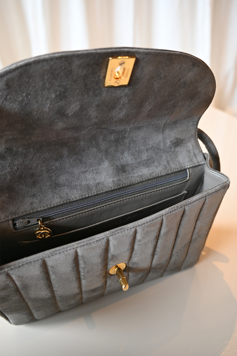 - Very good condition – stunning condition for her age, hardware is still very shiny and the suede is very clean