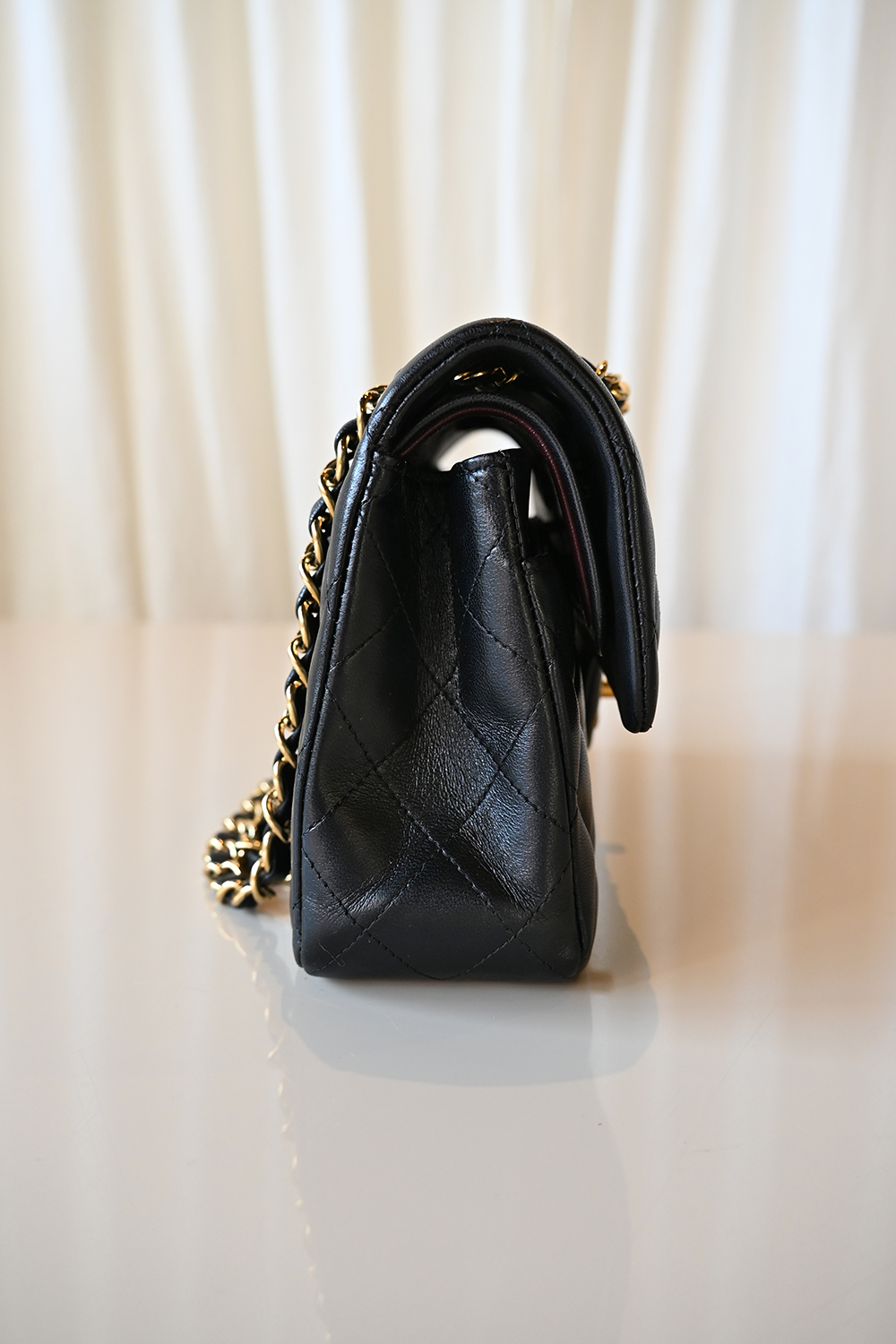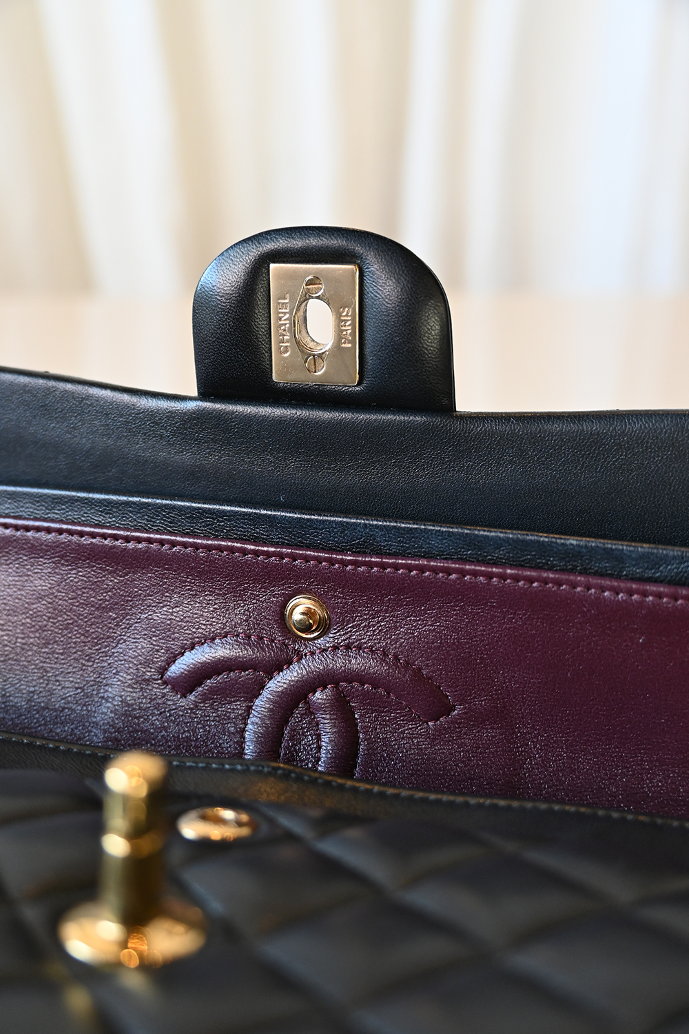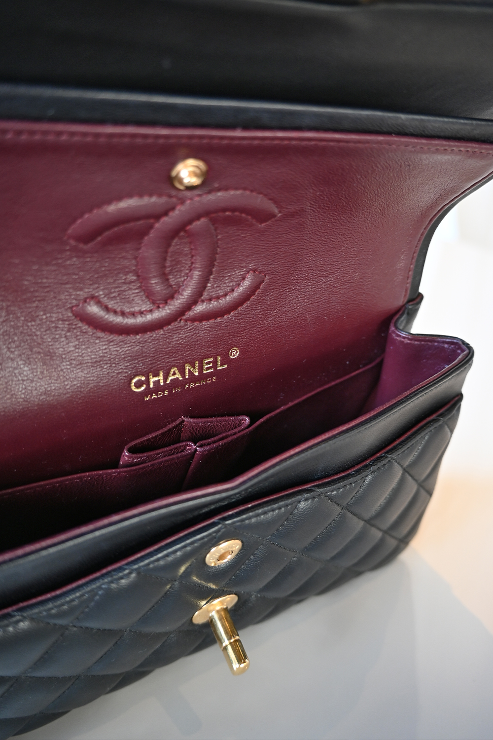 • Burgundy lambskin lining