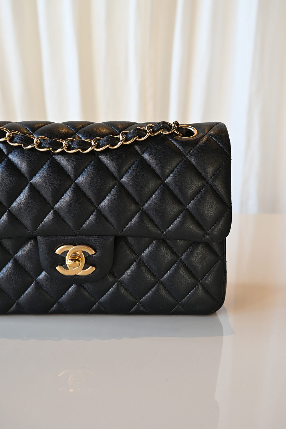 • Black lambskin leather