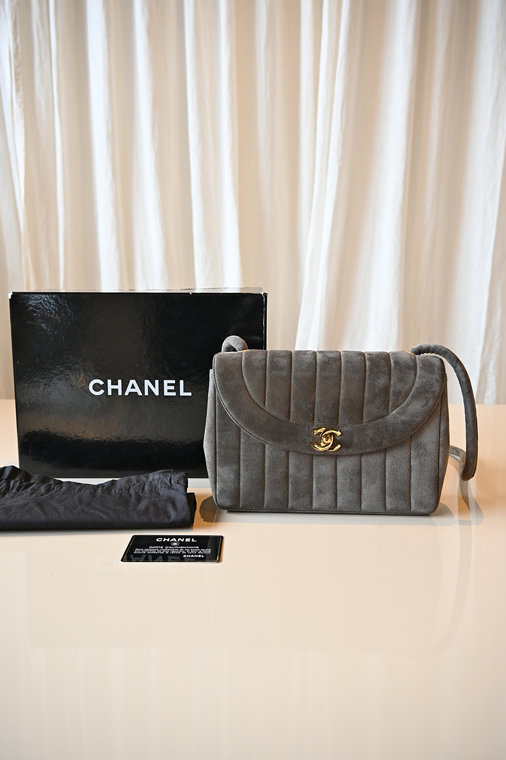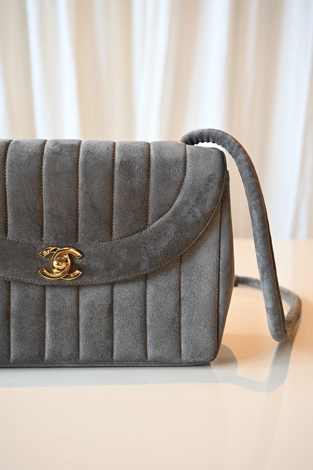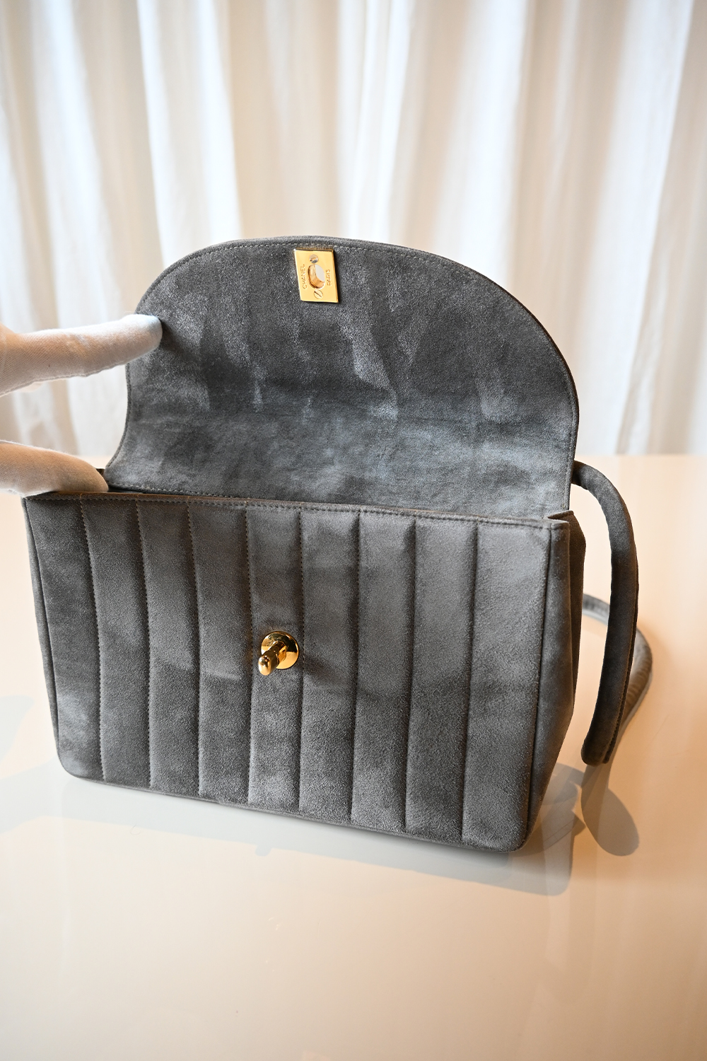 - Very good condition – stunning condition for her age, hardware is still very shiny and the suede is very clean