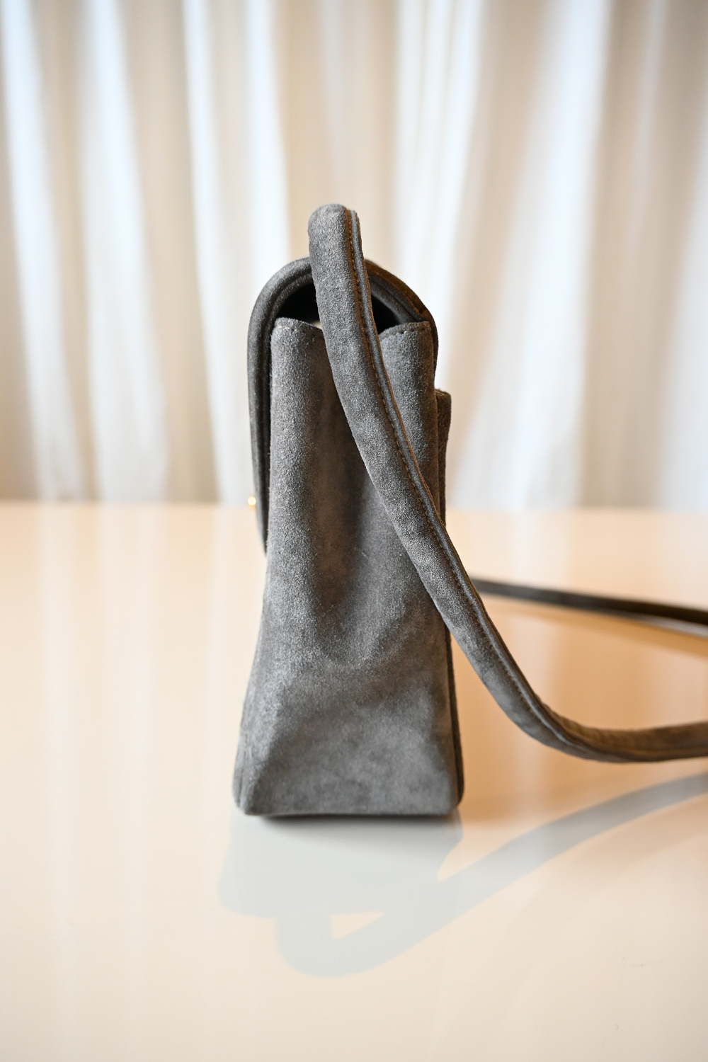 - Taupe suede
